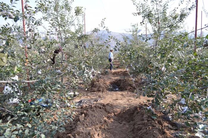 秋天是果农最忙的季节了,既要摘苹果,卖苹果,还要给果树施肥。